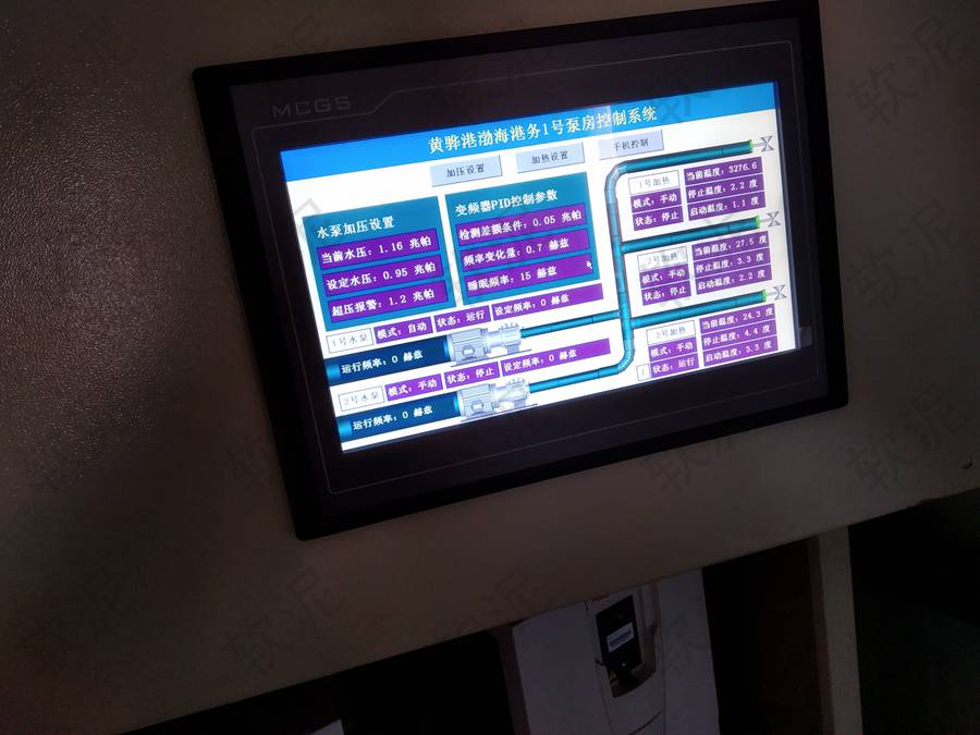 | 項(xiàng)目位于河北省滄州市黃驊港口。由原來的灑水車除塵方式改為了固定管道供水,高壓高空噴淋設(shè)備自動(dòng)噴灑的方式,實(shí)現(xiàn)作業(yè)期間自動(dòng)除塵功能。變頻器根據(jù)水壓傳感器反饋情況來決定水泵運(yùn)轉(zhuǎn)頻率,維持運(yùn)行期間的管道壓力在預(yù)設(shè)的范圍內(nèi)。使用軟泥智能控制主機(jī)的4G聯(lián)網(wǎng)控制功能,管理人員通過手機(jī)即可遠(yuǎn)程查看設(shè)備運(yùn)行狀態(tài),遠(yuǎn)程開關(guān)機(jī)和設(shè)置目標(biāo)水壓。 |