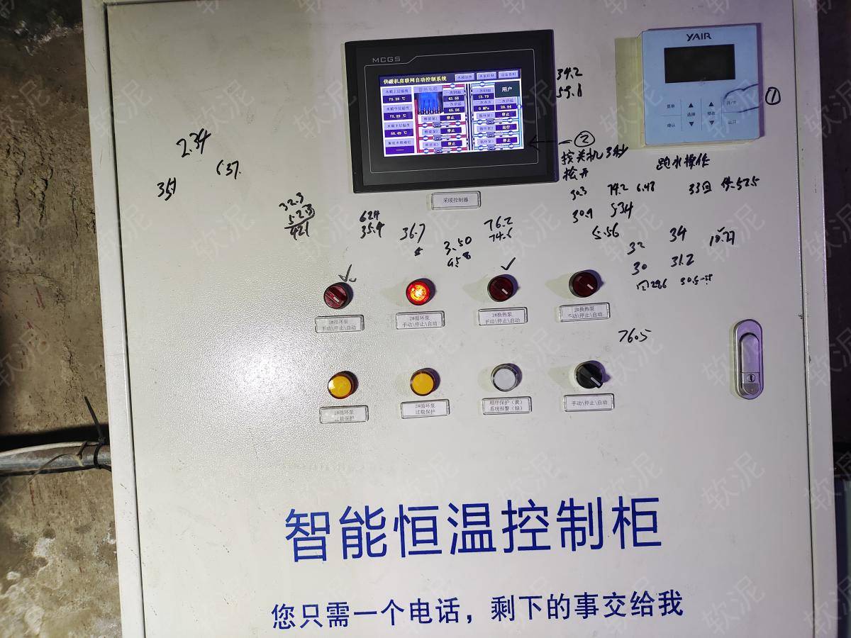 | 1. 項目位于河北省承德市承德縣下板城鎮(zhèn)小蘭窩村,冬季供暖系統(tǒng),夜間谷電價期間給大水箱蓄熱,二次網(wǎng)循環(huán)泵始終運行,一次網(wǎng)循環(huán)泵通過間歇運行,給板式換熱器升溫,維持二次網(wǎng)恒定溫度。白天不蓄熱,只釋放存儲的熱能,節(jié)約電費。 2. 現(xiàn)場無人值守,運行數(shù)據(jù)通過手機軟件隨時可查。不限管理人員人數(shù)。 |